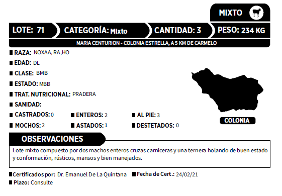 Lote mixto compuesto por dos machos enteros cruzas carniceras y una ternera holando de buen estado